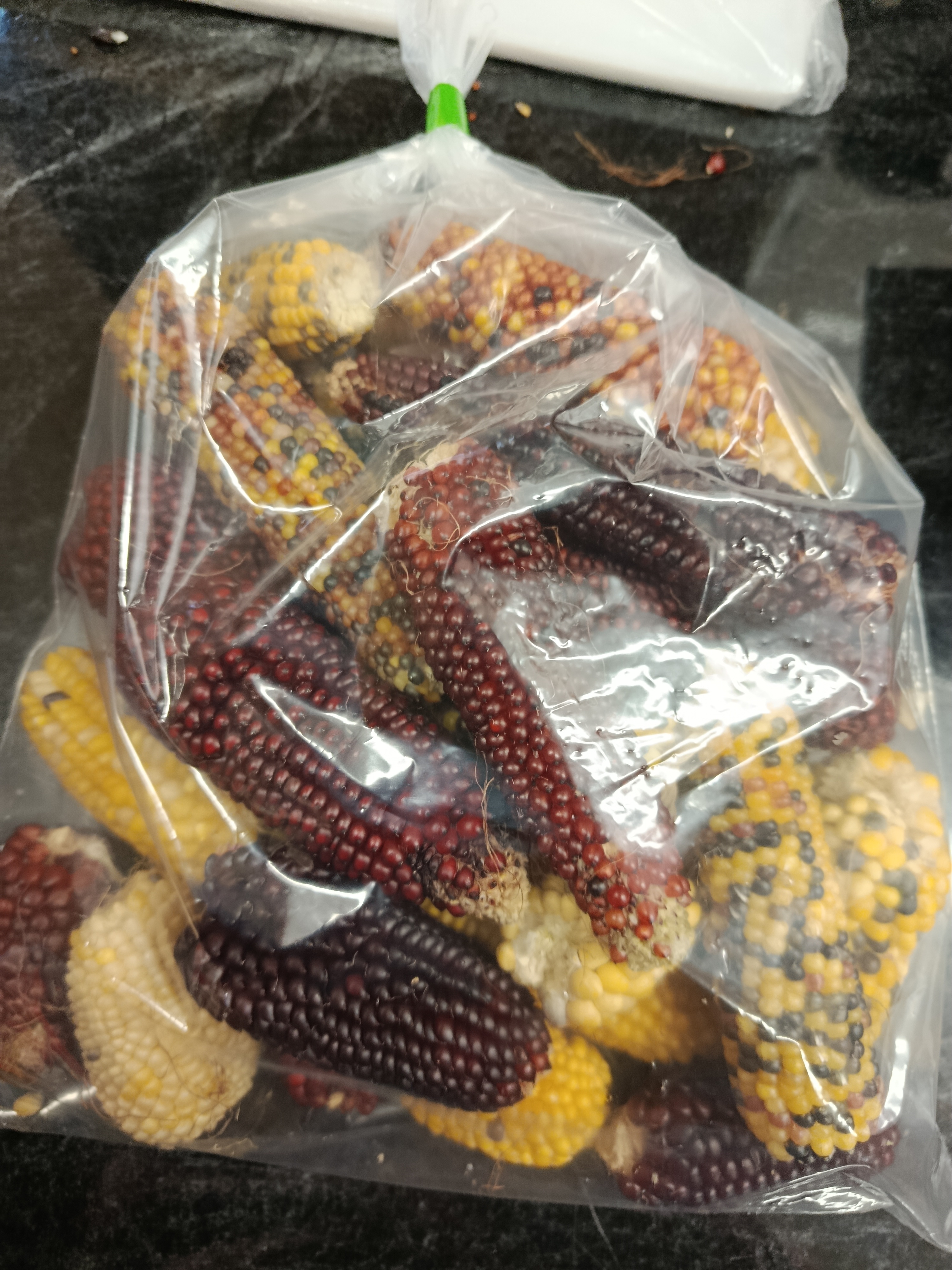Die verschiedenen Farben der Kolben von gelb über rot bis hin zu verschiedenfarbigen Kolben sind auf die ALTEN Sorten zurückzuführen und Naturgemäß sehr verschieden.